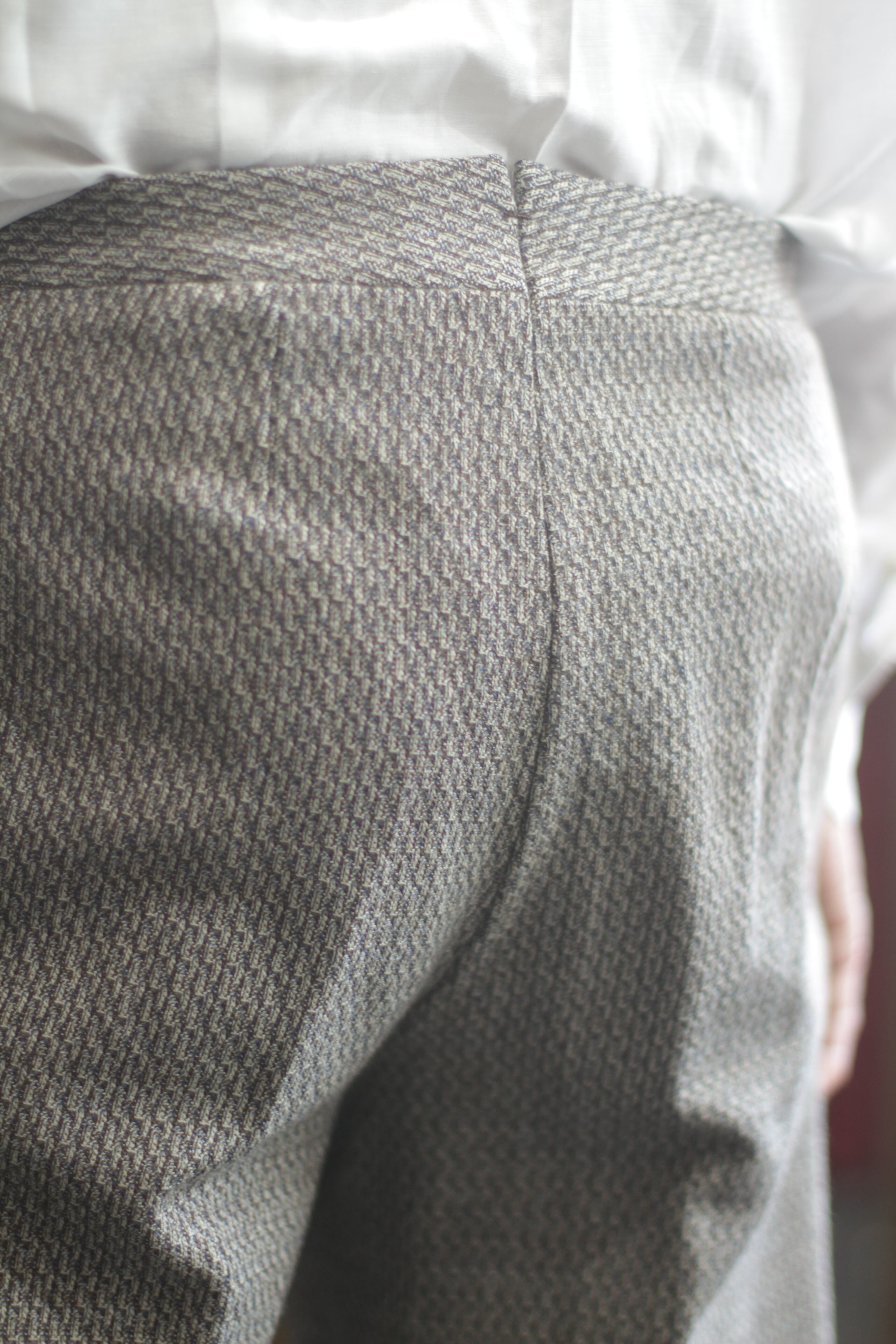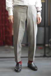 Ceruttiのヴィンテージ生地で仕立てたパンツ。現代の生地には見られないような柄はユニークで、とても味があります。